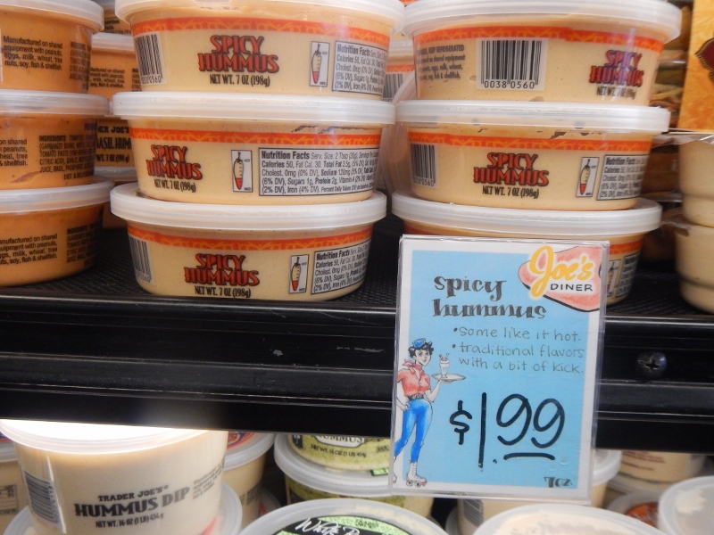 Trader Joe’s offers a variety of different hummus flavors. At $1.99 for an 8-ounce container, I’d definitely include this in the best bargains category. Two other grocery stores I visited were offering the same size of their store-brand for $2.99.