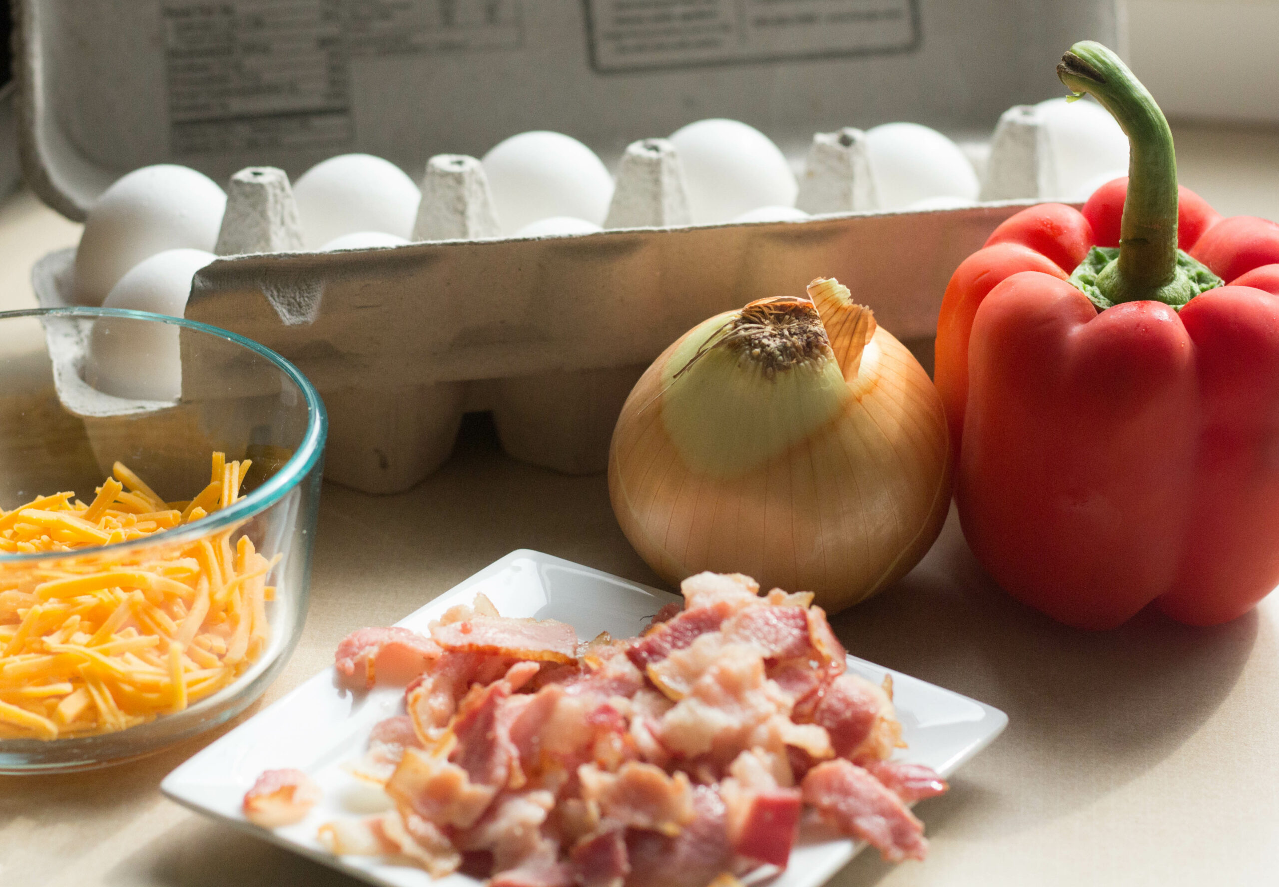 I hope you’ll consider some of the ways you could change up this recipe to suit your tastes. My son thought sausage would be better than bacon. You might swap some of the whole eggs for egg whites. You could add herbs. Change out the veggies for what you have growing in your garden. Cube up some ham and try that instead. You could also easily prep this for batch cooking. Enjoy!