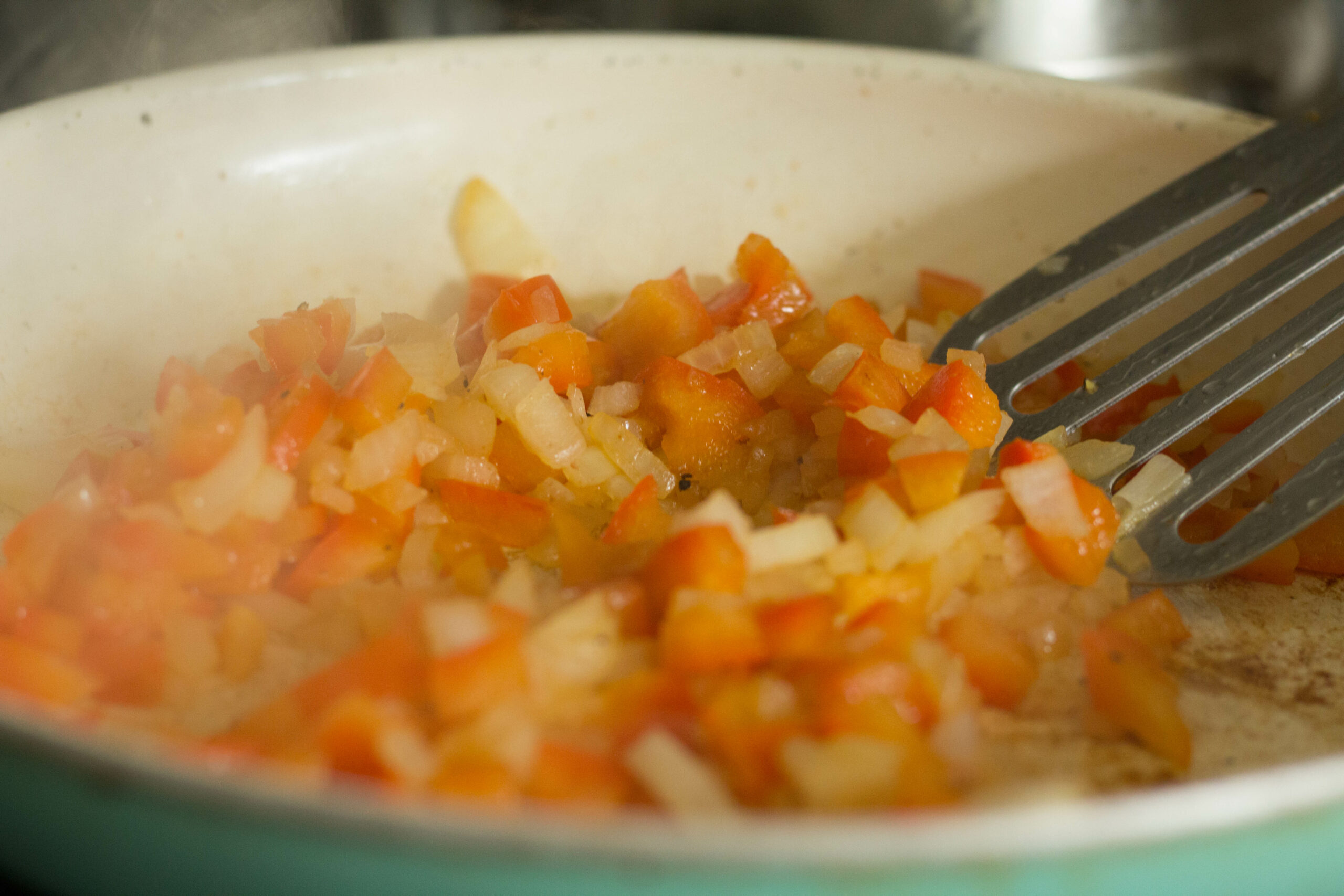 Cook your veggies until nice and soft, seasoning with salt and pepper. I gave mine a good 5 minutes.