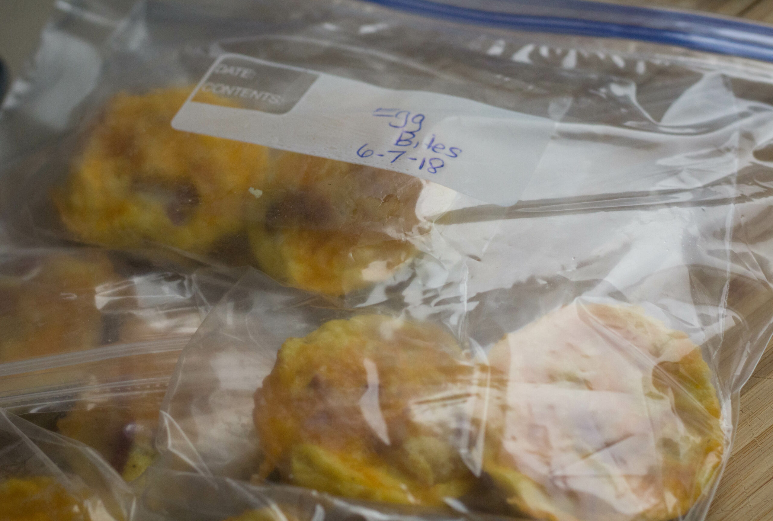 Here’s how I froze my egg bites: I put two into a sandwich bag and then the sandwich bags into a large, gallon-size freezer bag. This way, I can just grab and defrost what I need on the quick!
