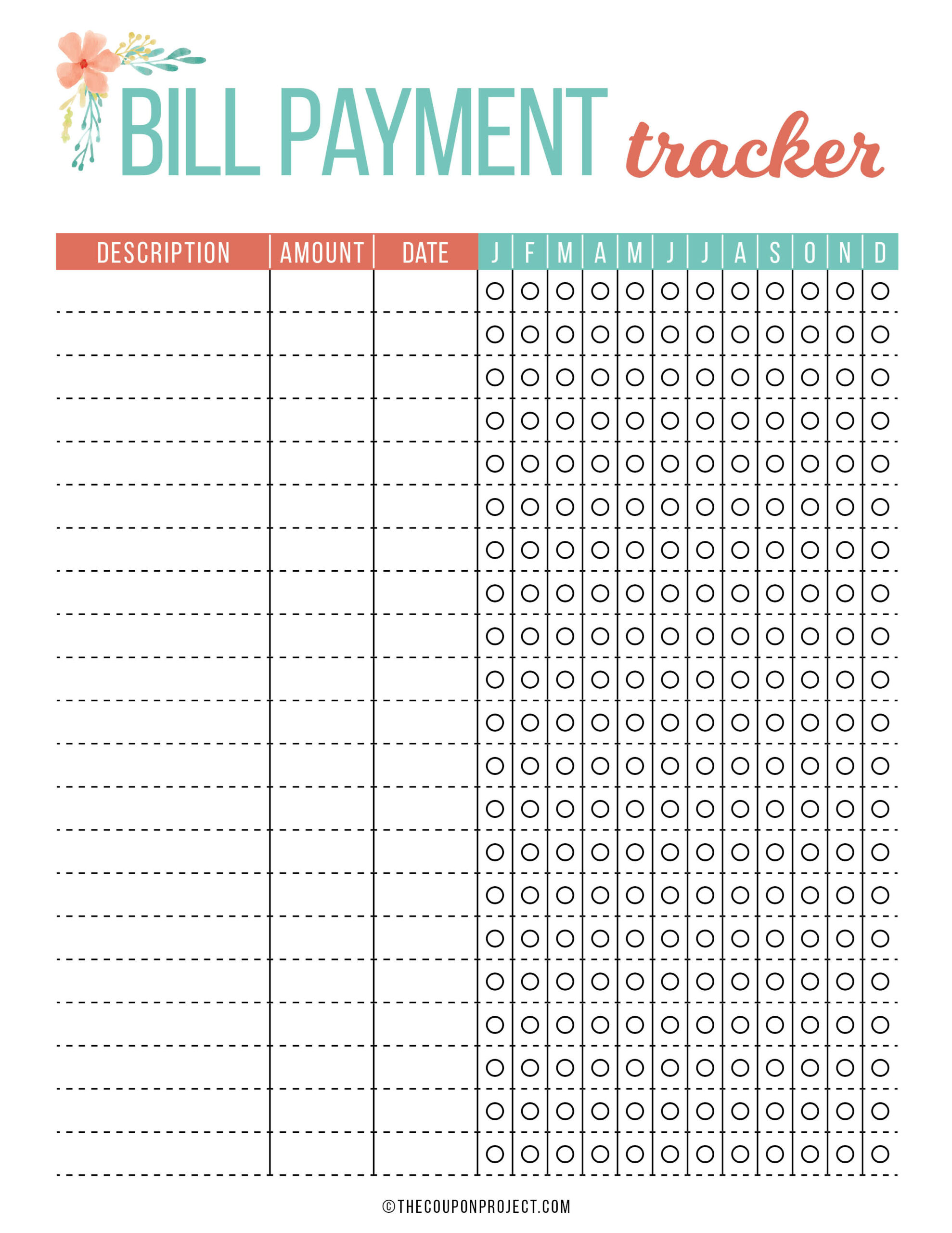 Free Bill Payment Tracker Printable