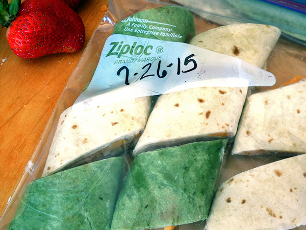 - Pull out your desired amount of sandwiches the night before and place them in a sandwich size Ziploc bag. Allow them to defrost in the refrigerator over night. If your child has an early afternoon lunch, these pinwheels can even be pulled out the morning of.