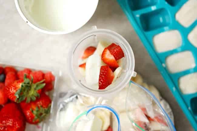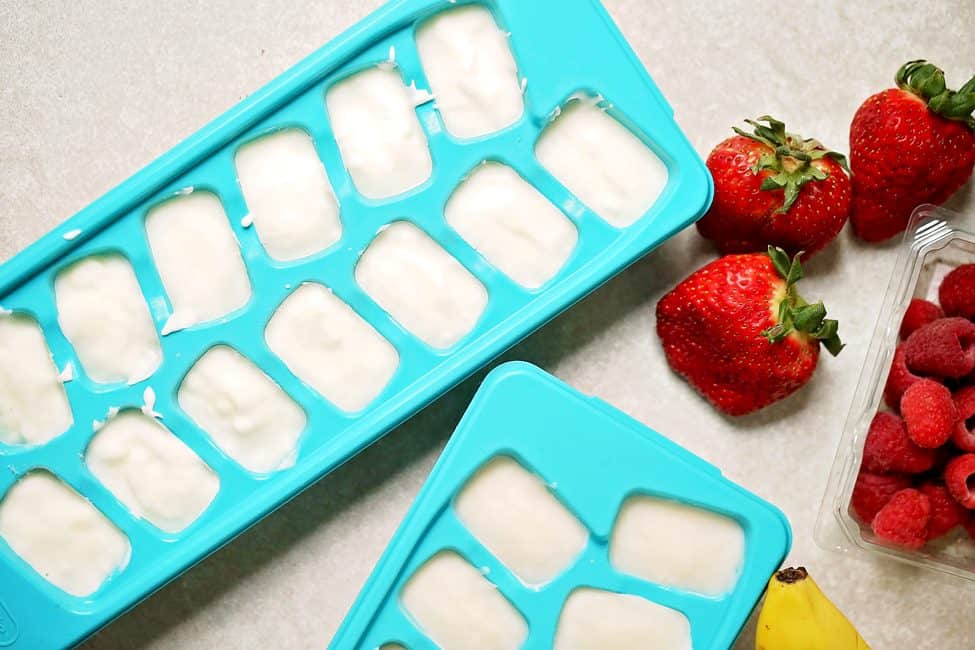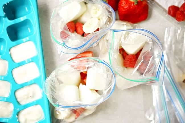 After your yogurt cubes are frozen, you’ll add about 5 to each baggie.