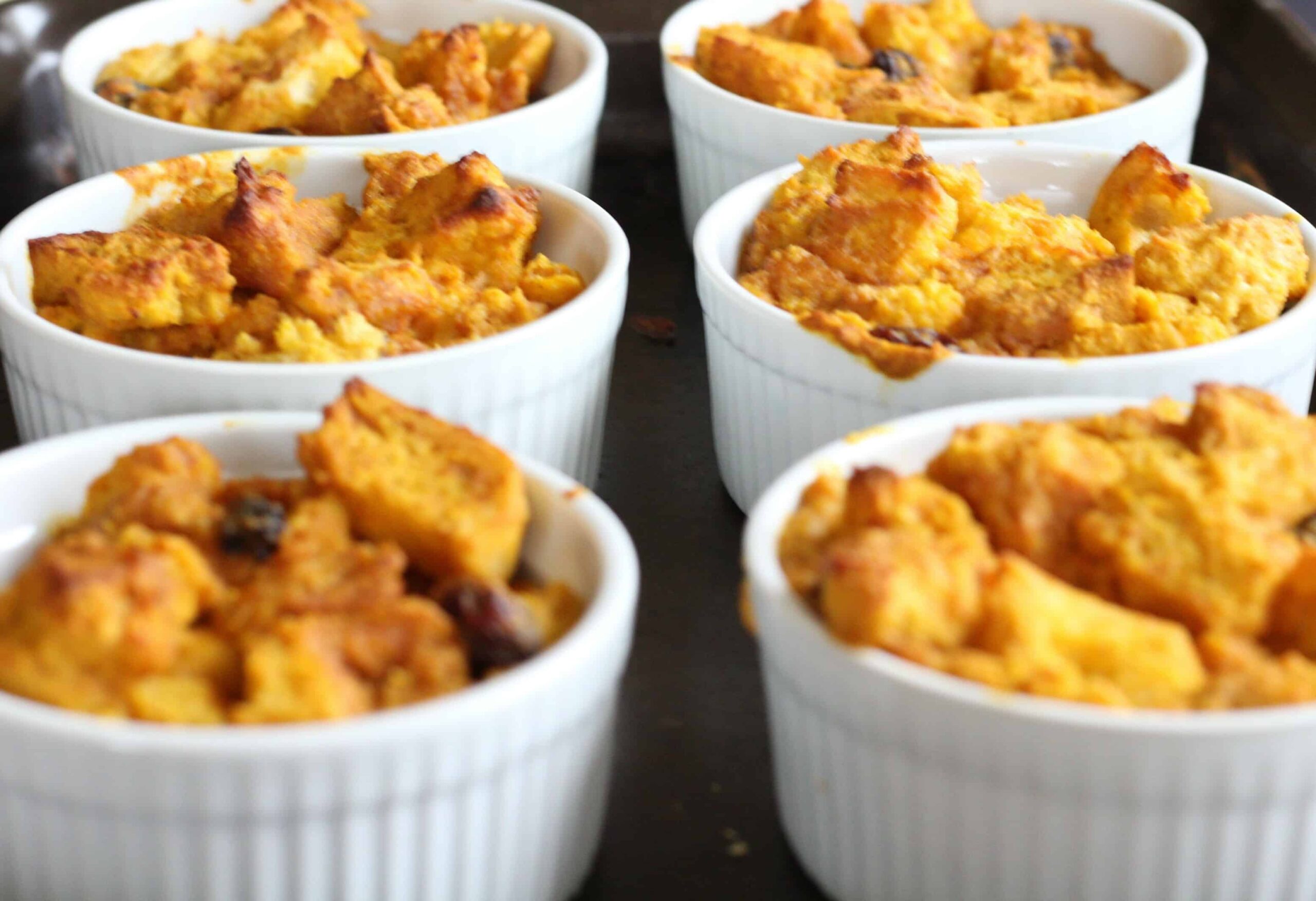 I checked my bread puddings at about 40 minutes and they were done! But your cooking time may really vary depending on the bakeware you’ve selected. Plan on anywhere from 30-60 minutes, erring to test for doneness closer to the 30 minute mark.