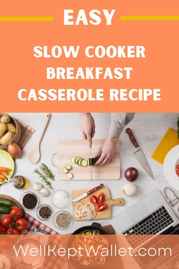 One way to cut down my time in the kitchen is with a slow cooker breakfast.  Instead of scrambled eggs, with a side of sausage, bacon and hash browns (all cooked individually) why not throw it all in a slow cooker, add some cheese and bell pepper and there you go!