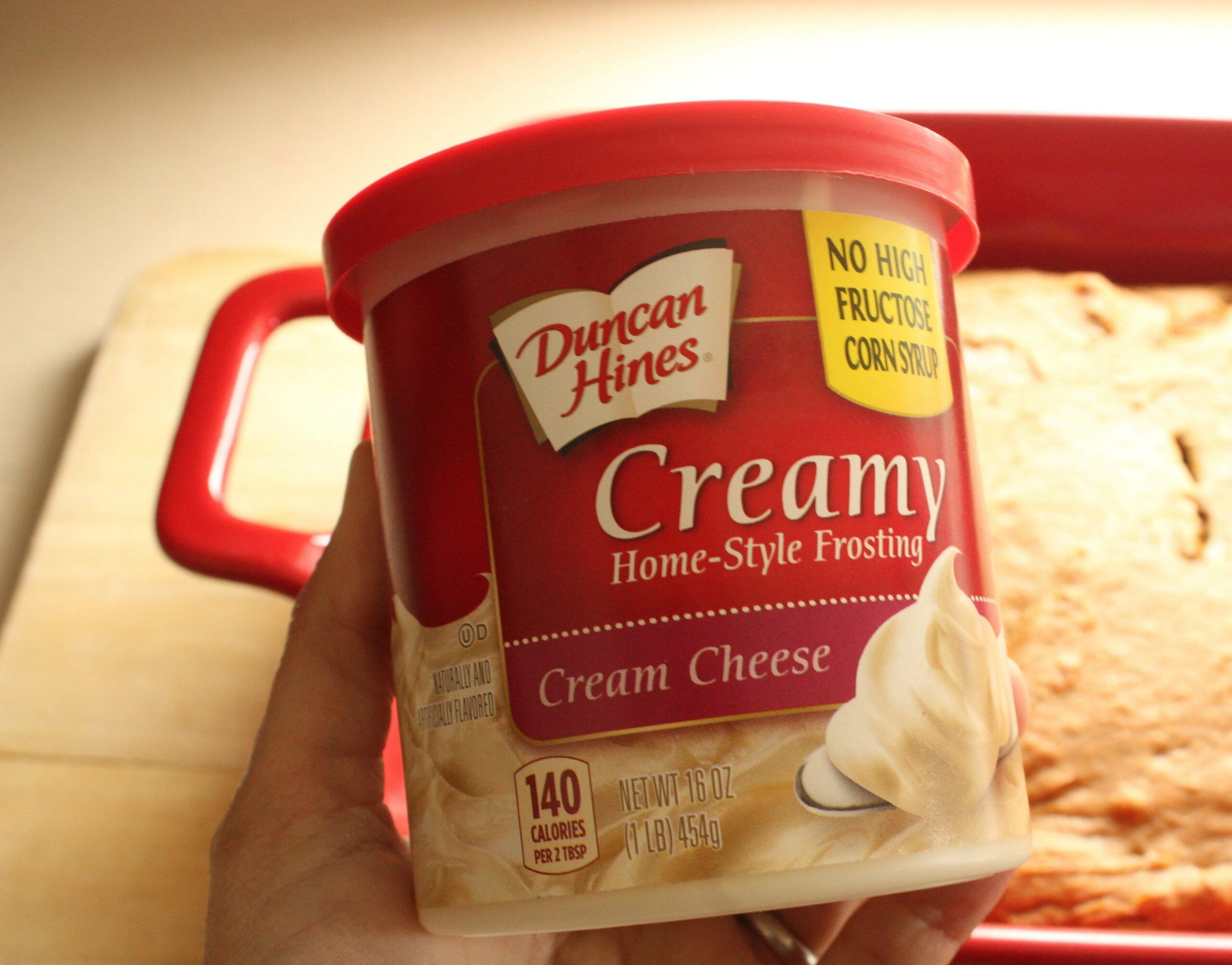 Since this recipe is all about keeping things quick and simple, I just used a can of cream cheese frosting.