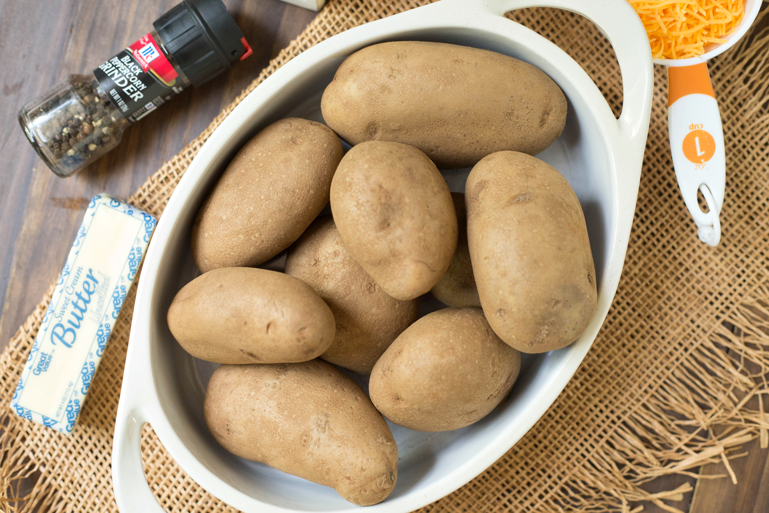You can also take the baked potatoes, cut the tops off, add butter and shredded cheese after they have cooled and freeze them. It’s an easy lunch – just take them out of the freezer and microwave for a couple of minutes and you have a baked potato. 🙂
