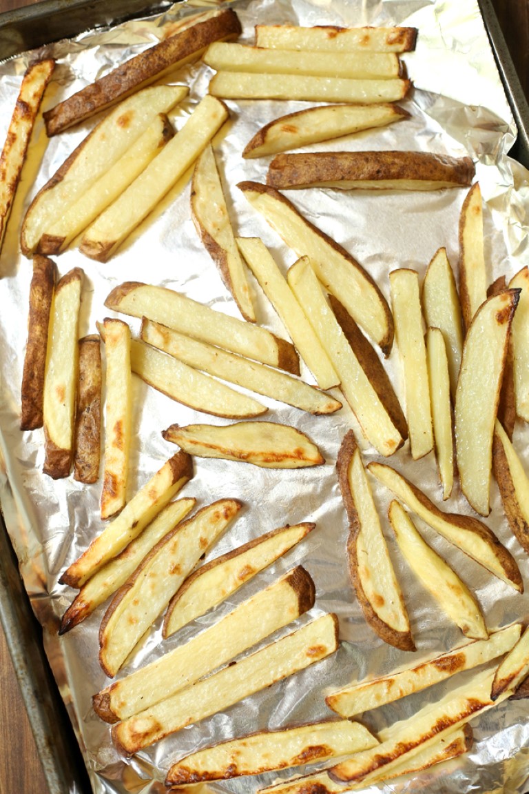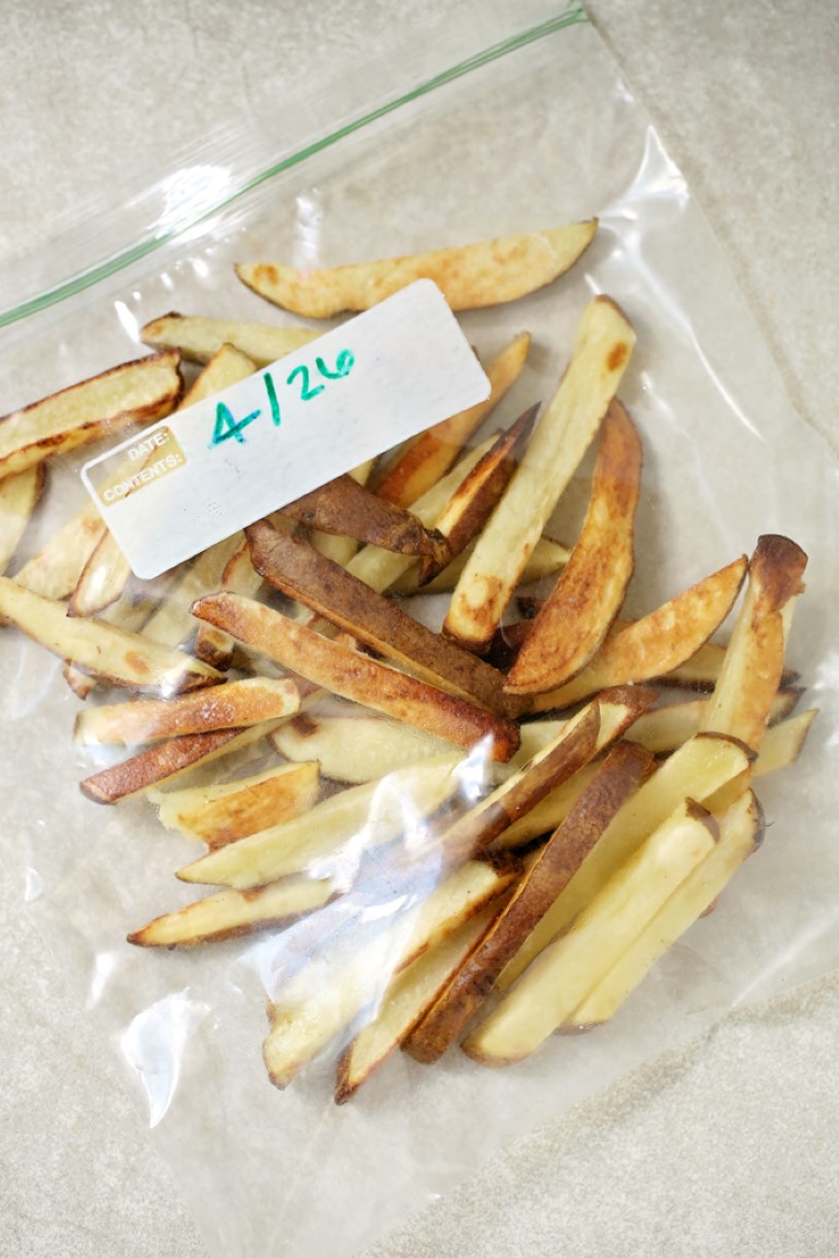I love homemade fries, but I don’t make them often because I think it’s too much work for a side dish when I’m trying to get dinner done. So I found out how to freeze them. This way I can just take out how much I need and throw them in the oven! Nice, am I right?