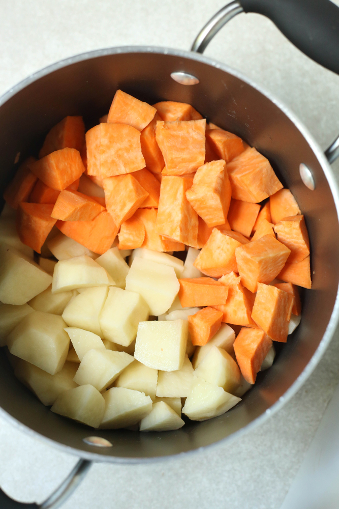 Peel and cube them all, then throw them in some salted boiling water until tender. (20 to 30 minutes)