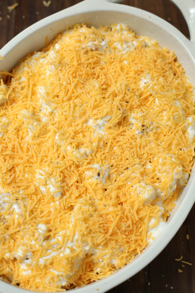 Then just mash it all with the other ingredients, except for half of the cheese that you sprinkle on top. In the recipe it calls for roasted garlic. I just used minced that I had on hand. And I used about 1 cup of the retained potato juice 🙂 – 1/2 cup if you don’t double the recipe. Refer to the recipe link for ingredients and added instruction.